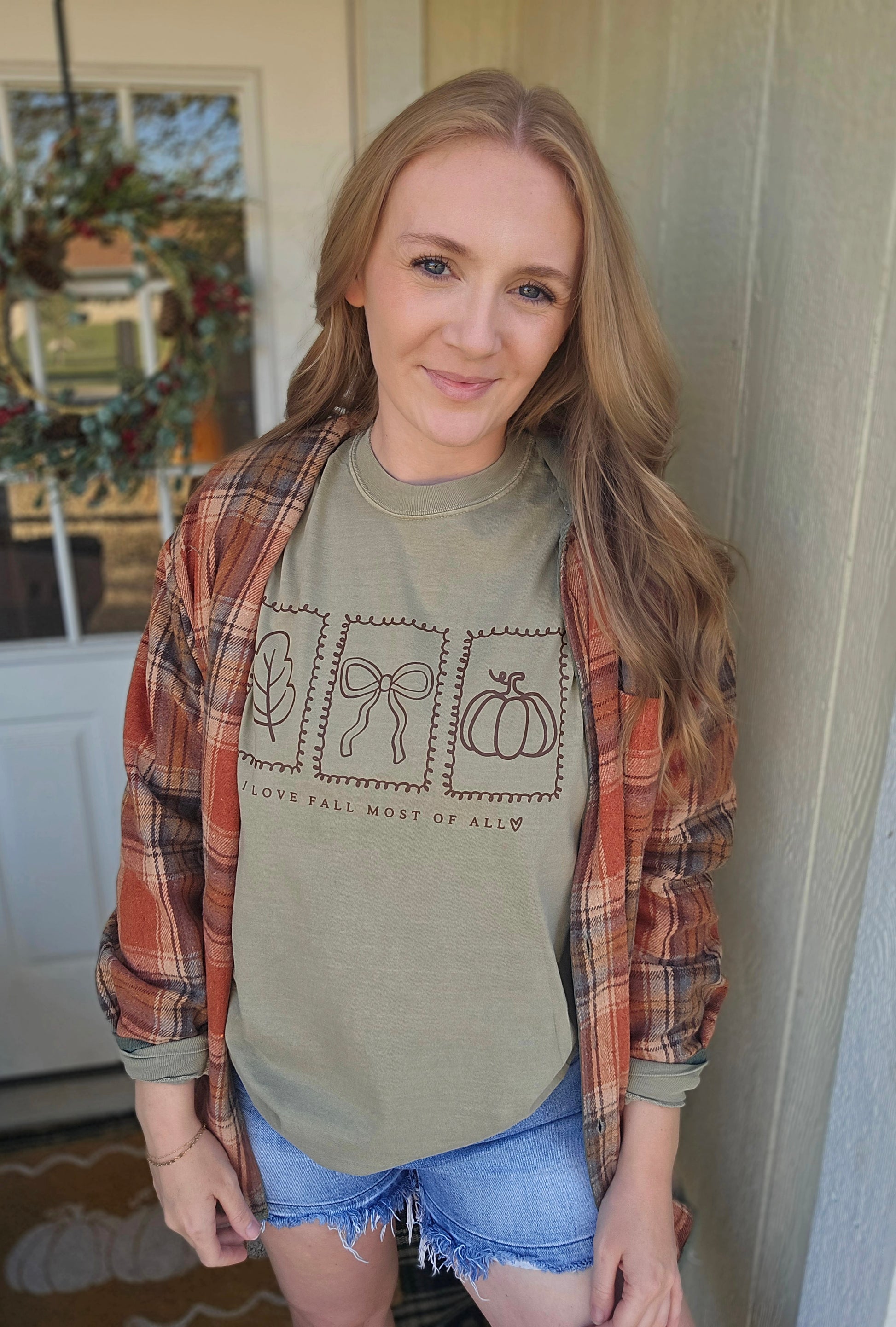 I LOVE FALL MOST OF ALL Stamp Taupe Long Sleeve Tee