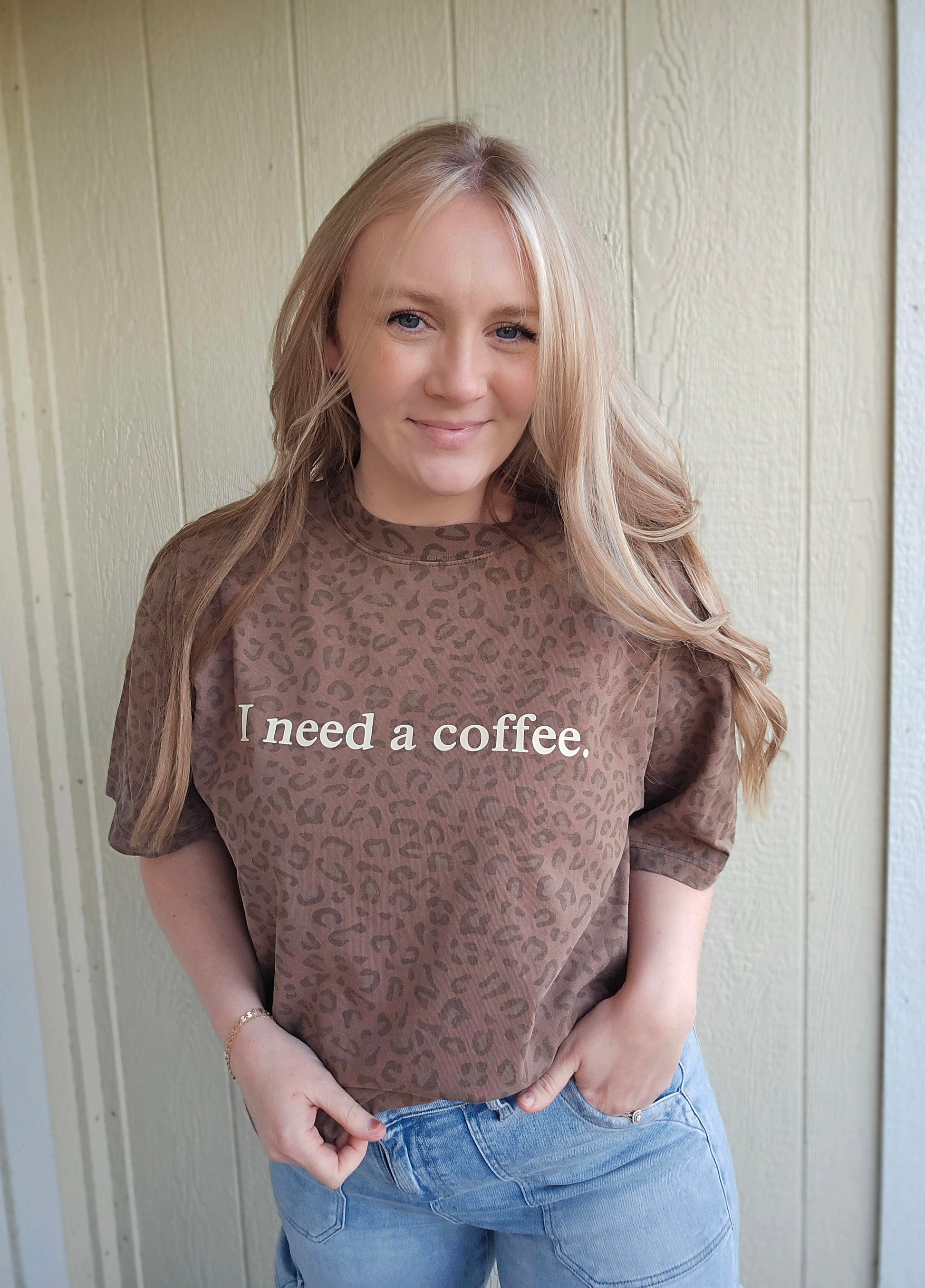 I NEED A COFFEE Vintage Wash Leopard Tee