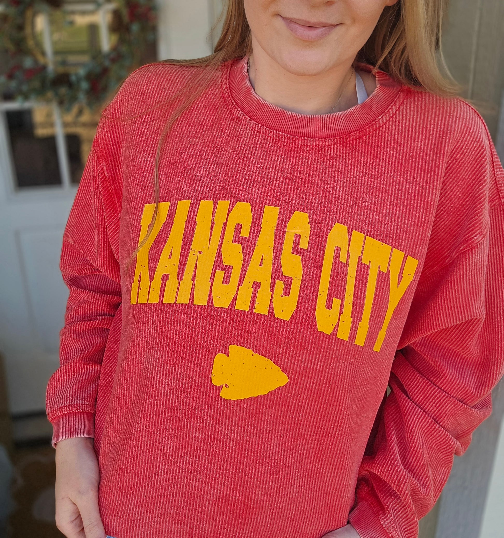 KANSAS CITY Arrow Red Corded Crewneck Sweatshirt