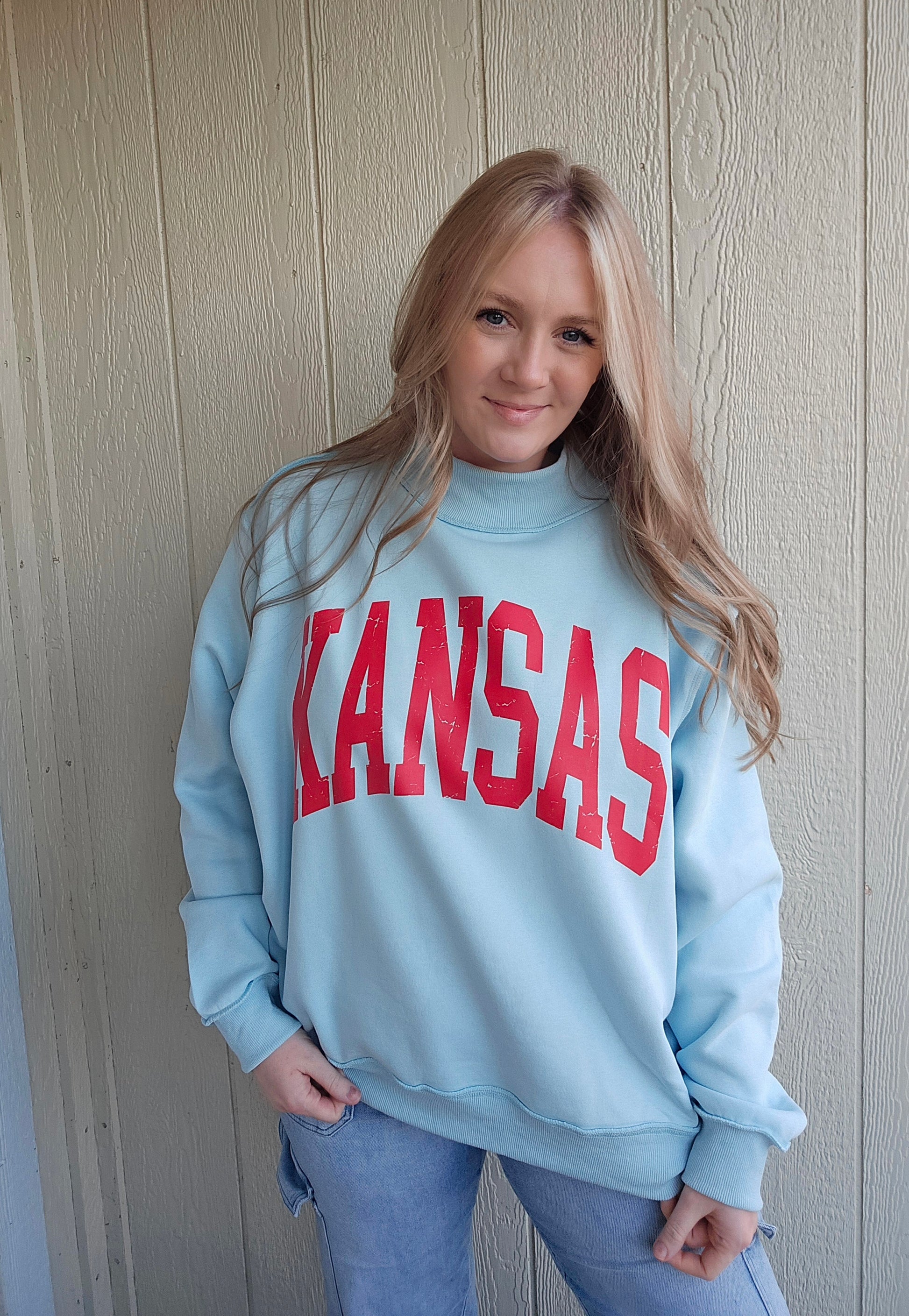 KANSAS Varsity Light Blue Mock-Neck Sweatshirt