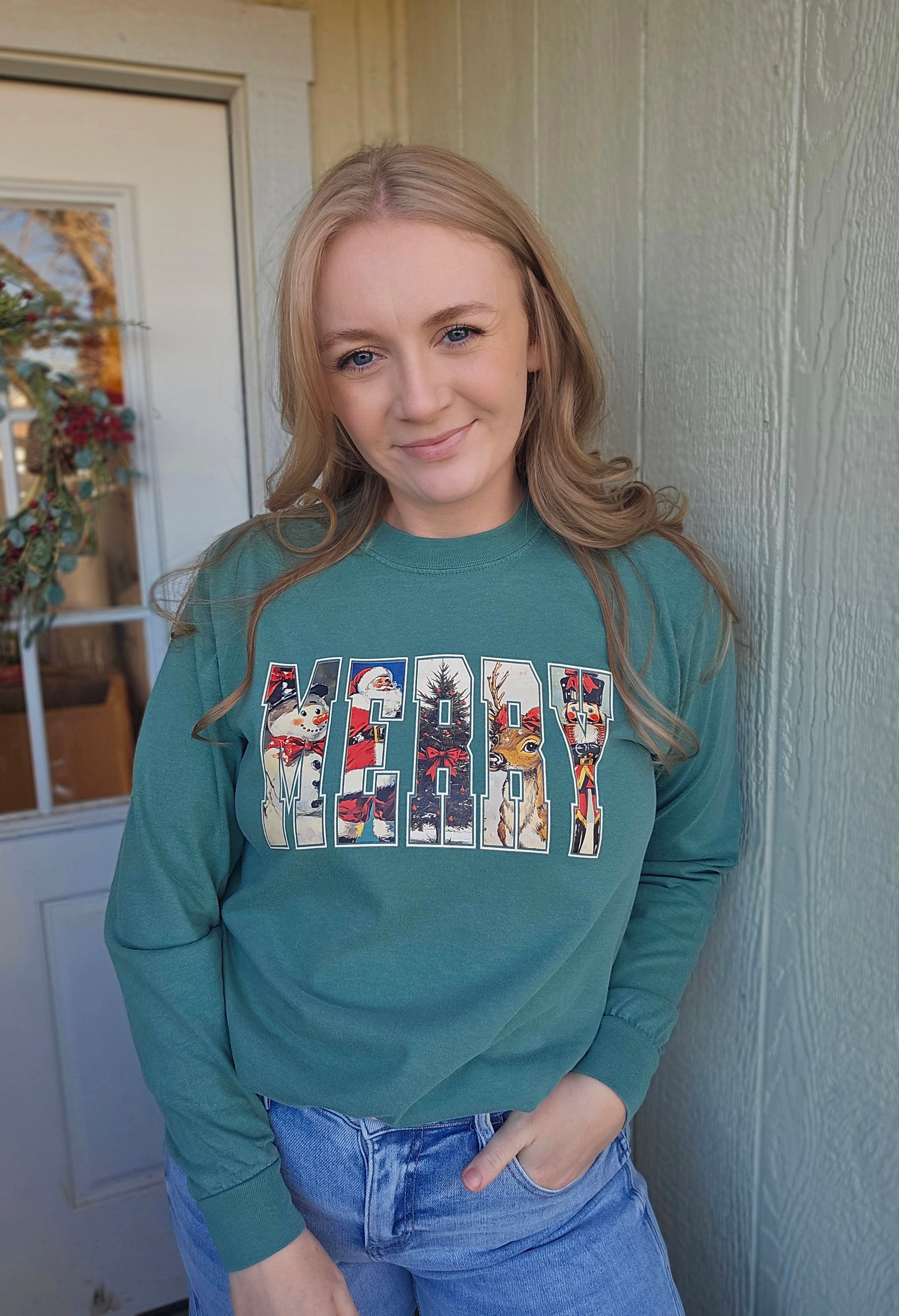 MERRY VINTAGE Light Green Vintage Long Sleeve Tee