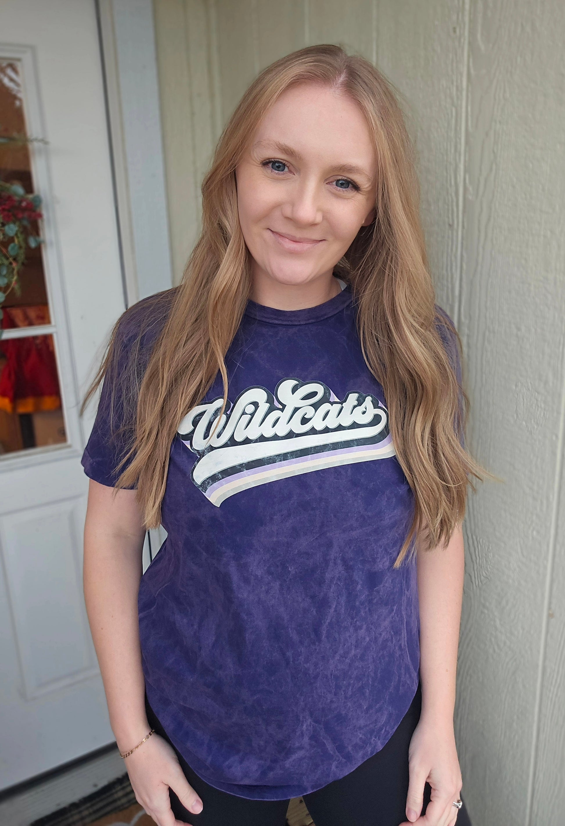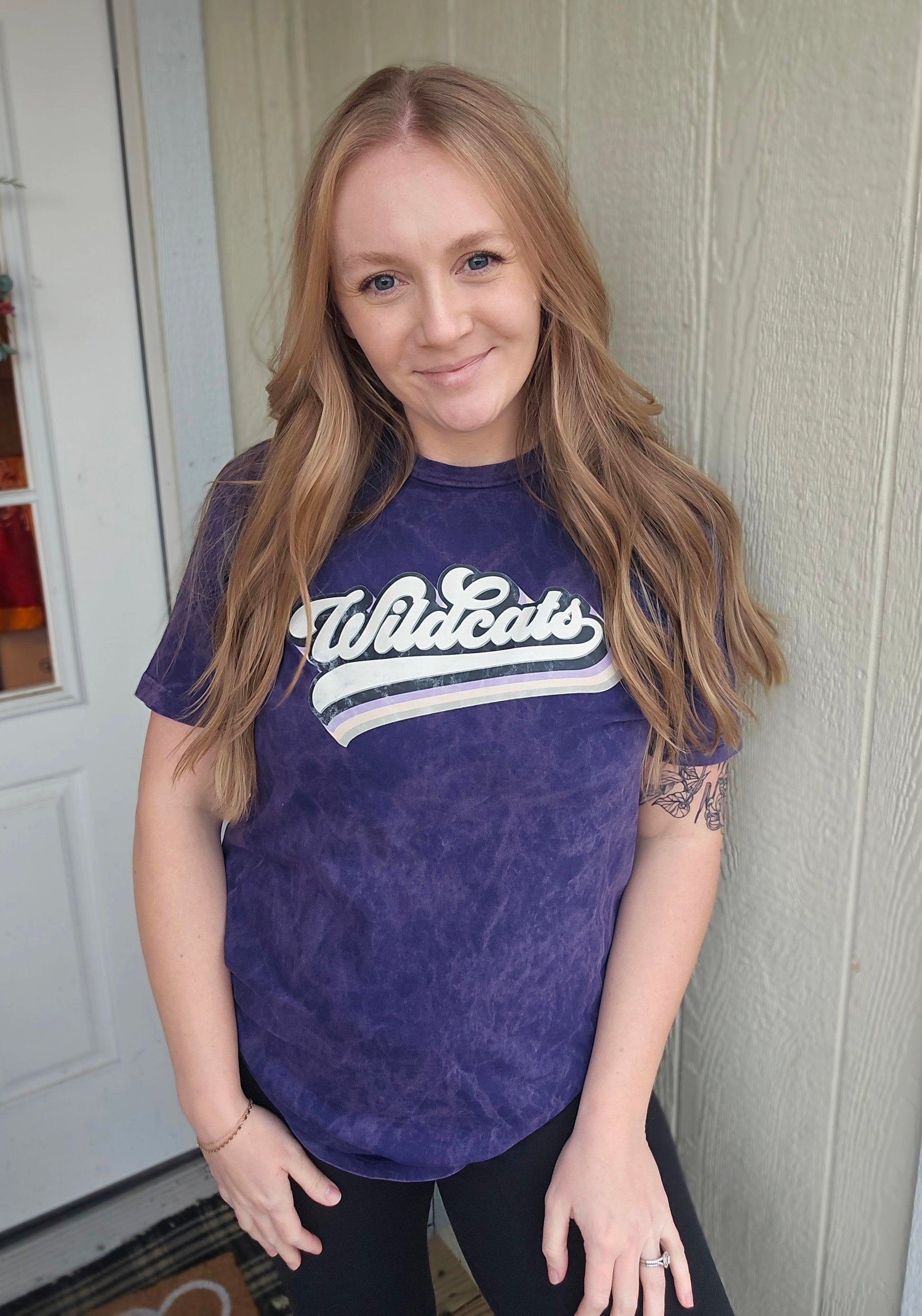 Retro Wildcats design on a perfect purple cloud tee! Each tee is unique in it's vintage wash.