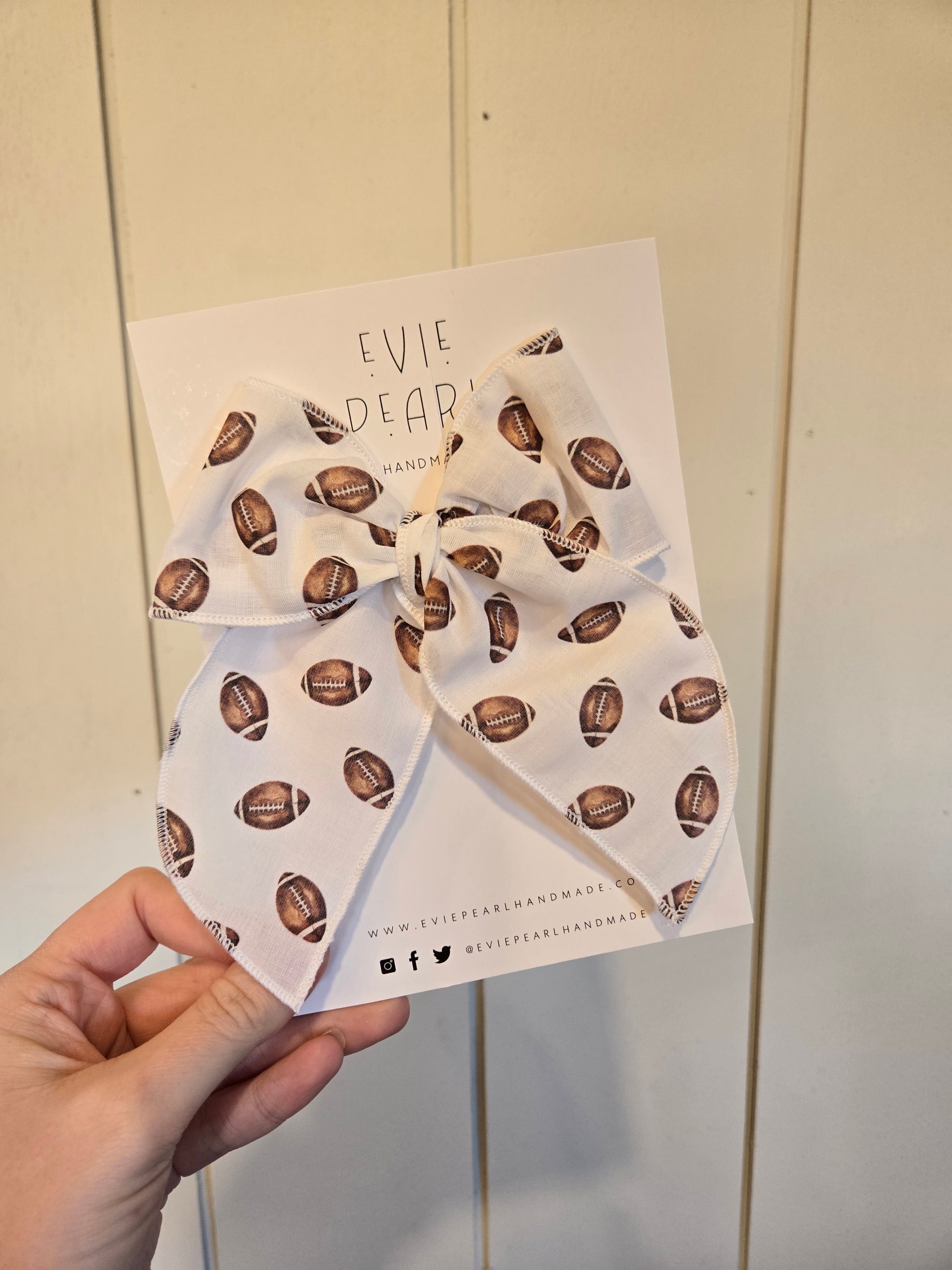 SIMPLE FOOTBALL White Oversized Clip Bow