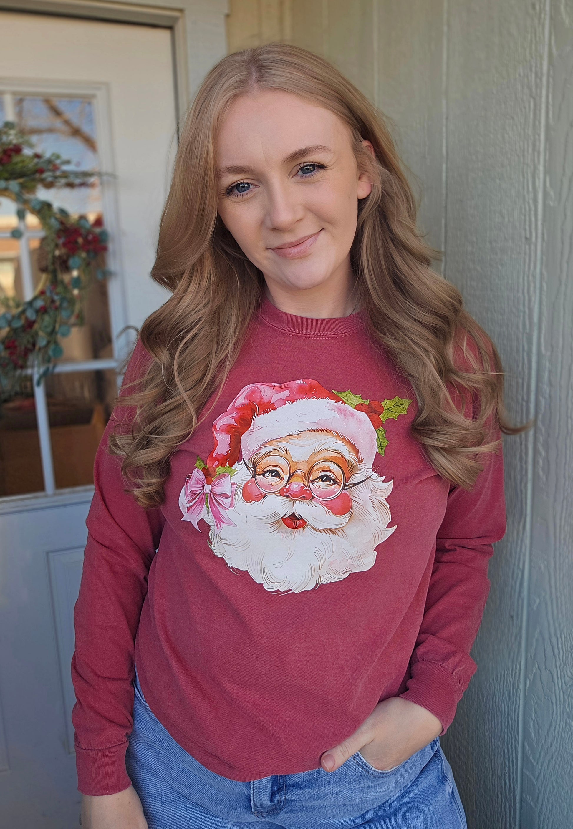 VINTAGE SANTA BOW Red Vintage Long Sleeve Tee
